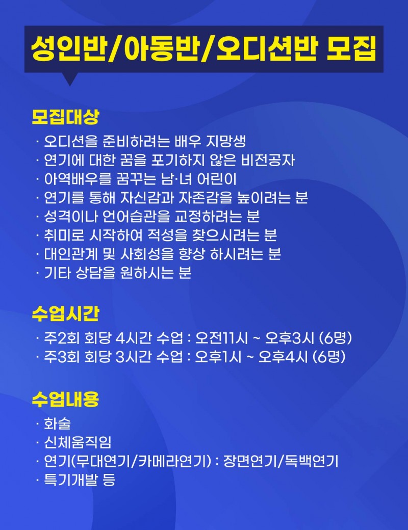성인반 / 아동반 / 오디션반 모집 안내