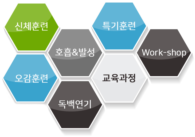 연기자에게 필요한 음적인 부분과 신체적부분, 그외 미적인 부분 등을 특기 훈련을 통해 습득해 나아간다.